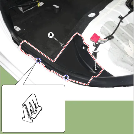 | 3. | Using screwdriver or remover, remove the rear pillar trim (A).
