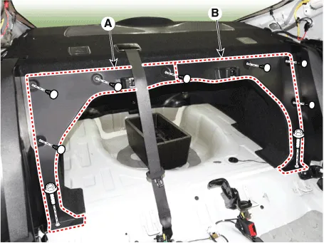 | 1. | Remove the rear seat cushion assembly. (Refer to Rear Seat - "Rear Seat Assembly") |