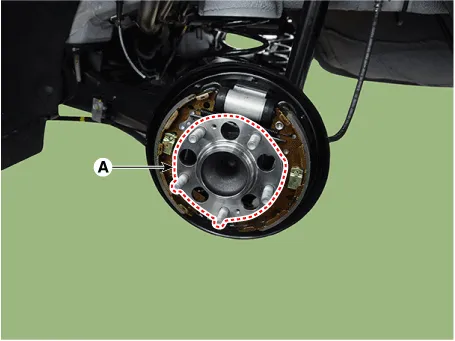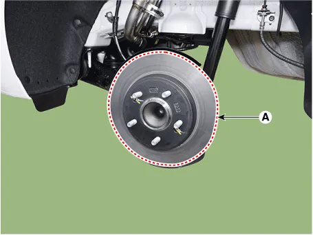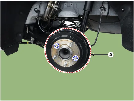 | 5. | Loosen the hub mounting bolts and then remove the hub (A) from the torsion beam.