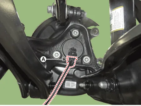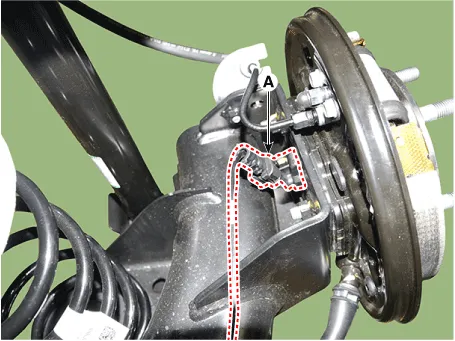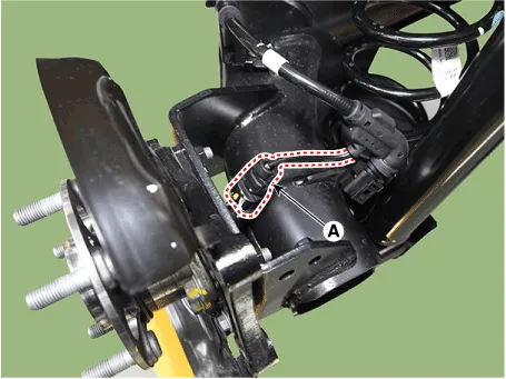 | 3. | Disconnect the rear wheel speed sensor connector (A).