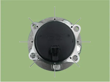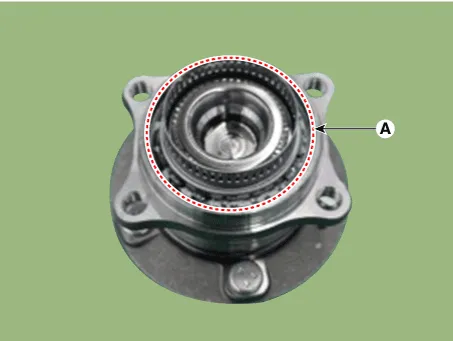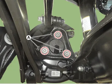 | 6. | Remove the hub bearing assembly after loosening the hub bearing mounting bolts (A).