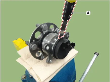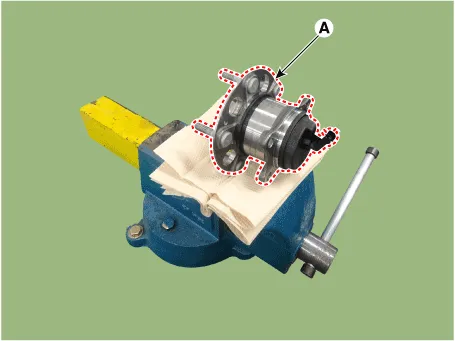 | 2. | Fix the rear hub bearing assembly (A) on the vise.