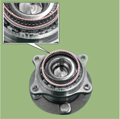 | 4. | Remove the sensor cap by hammering on a gap between sensor cap and hub bearing assembly using a scraper (A).