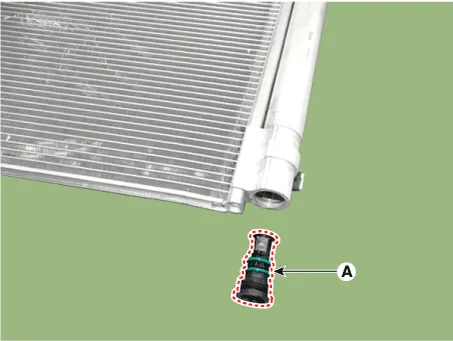 | 3. | Remove the receiver-drier (A) from condenser using a long nose plier. Check for crumbled receiver-drier and clogged bottom cap filter.