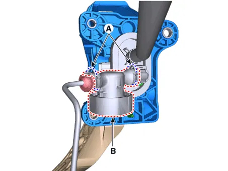 | 3. | Pull the snap pins (A) and then removing the regulator (B). [Gasoline 1.6 MPI / Gasoline 2.0 MPI]
