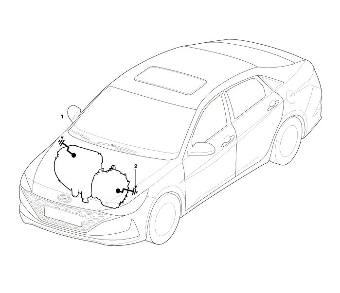 1. Engine ground (Engine ↔ Chassis) 2. Transaxle ground (Transaxle ↔ Chassis)