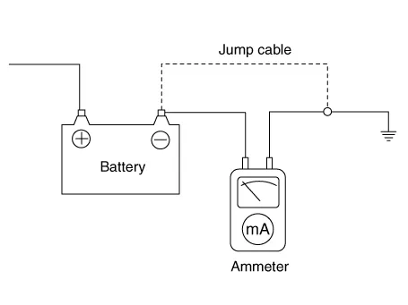 | 4) | After disconnecting the jump cable, read the current value of the ammeter. |