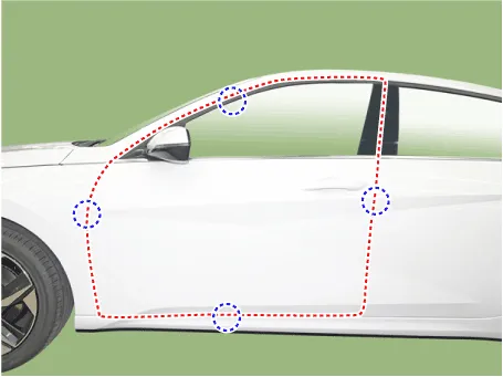 | 2. | Place the vehicle on a level surface before adjusting the doors. |