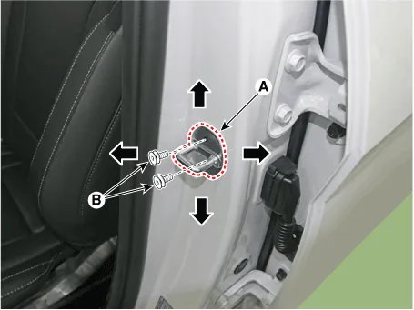 | 1. | Remove the front door trim. (Refer to Front Door - "Front Door Trim") |