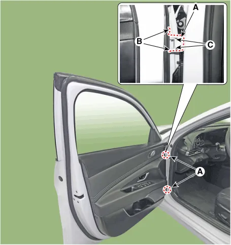 | 2. | Separate the mounting plug hole (A) from the front door module.
