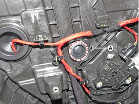 | 2. | Separate the mounting plug hole (A) from the rear door module.