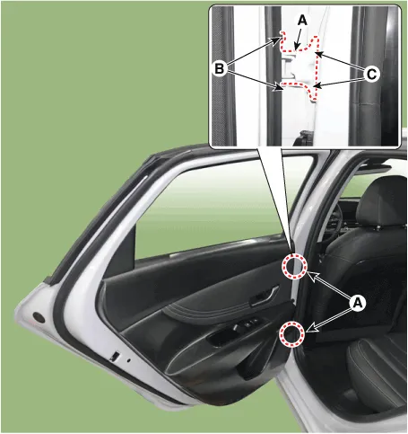 | 1. | Remove the rear door trim. (Refer to Rear Door - "Rear Door Trim") |