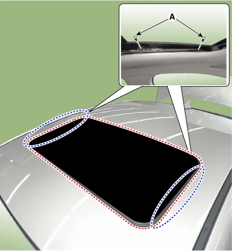 | 1. | Inspect the step height between the roof panel (A) and the glass weatherstrip (B) and then adjust it if necessary.