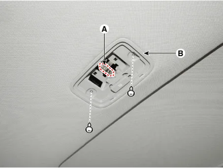 | 4. | Disengage the room lamp (B) after loosening the mounting screws.