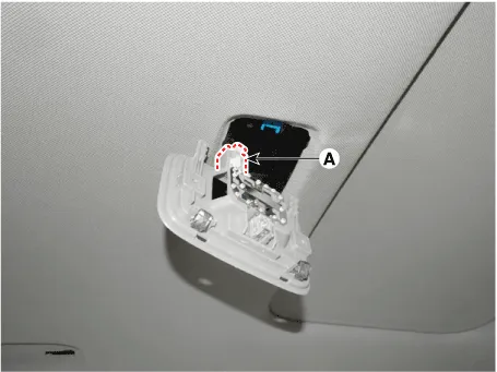 Repair procedures Removal1.Disconnect the negative (-) battery terminal.2.Using a remover and remove the overhead console (A).3.Disconnect the overhead console connectors (A).