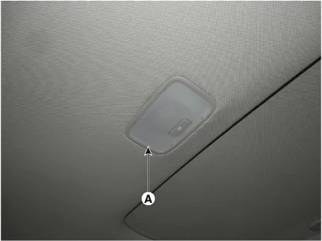 | 3. | If it is necessary to replace the bulb, remove the bulb (A) after disengaging the room lamp lens. |