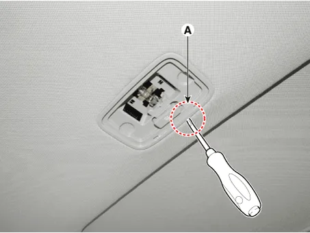 | 2. | Using a screwdriver or remover, Separate the room lamp lens (A) from the room lamp.