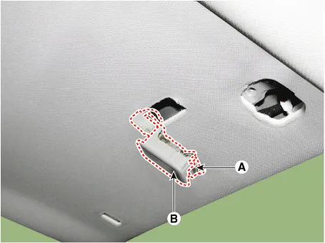 | 1. | Separate the vanity Lamp (A) from the roof trim after disengaging the mounting clip (B).