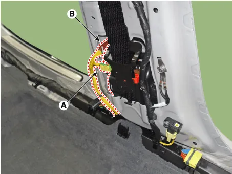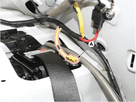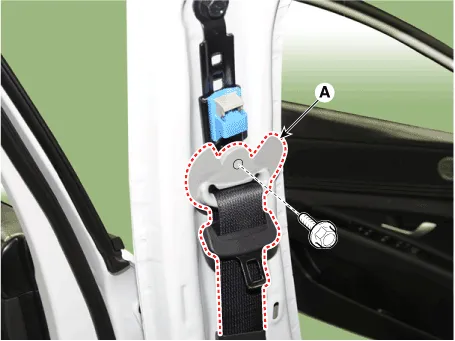 | 1. | Tighten the mounting bolt and install the rear seat belt pretensioner (A).