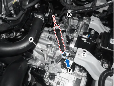 | 8. | Tighten the nut (C) with the specified torque.