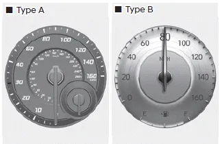 The speedometer indicates the speed of the vehicle and is calibrated in miles per hour (MPH) and/or kilometers per hour (km/h).