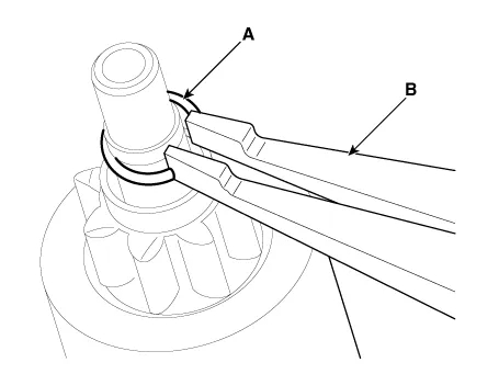 | 8. | After removing the stop ring (A) using stop ring pliers (B).