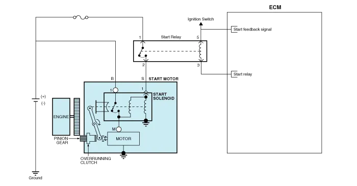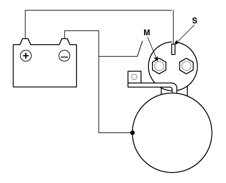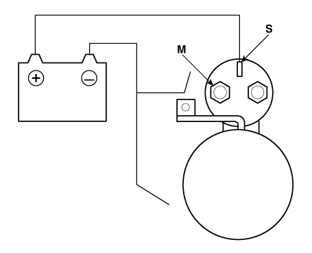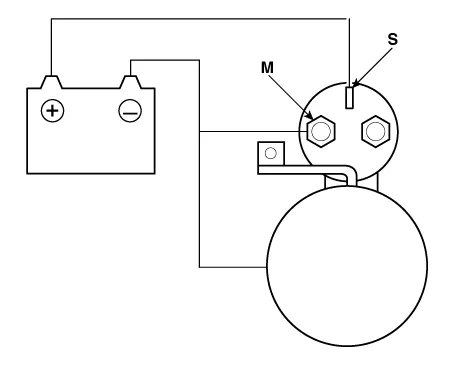 | 3. | Disconnect the battery from the M terminal. If the pinion does not retract, the hold-in coil is working properly.