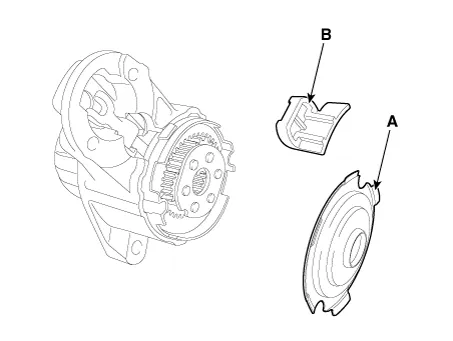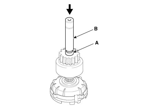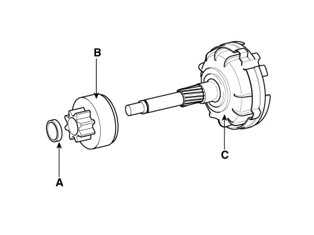 | 9. | Disconnect the stopper (A), overrunning clutch (B) and internal gear (C).