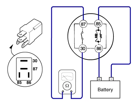 | 5. | Apply 12V to terminal 85 and ground to terminal 86. Check for continuity between terminals 30 and 87.
