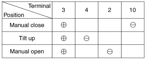 | 4. | Ground the terminals as below table, and check that the sunroof unit operates.