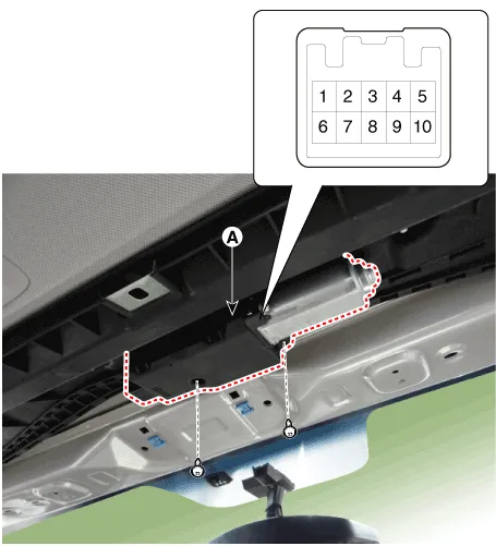 Repair procedures Inspection1.Disconnect the negative (-) battery terminal.2.Using a remover and remove the overhead console (A).3.Check for continuity between the terminals.