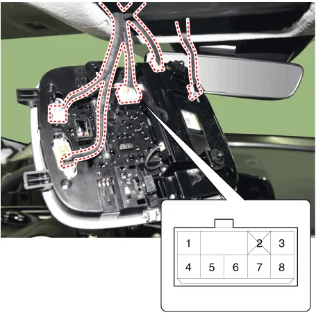 Repair procedures Inspection 1.Disconnect the negative (-) battery terminal.2.Remove the roof trim.(Refer to Body - "Roof Trim")3.Disconnect the sunroof motor (A) connector.