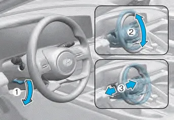 While adjusting the steering wheel height, please do not push or pull it hard since the fixture can be damaged.