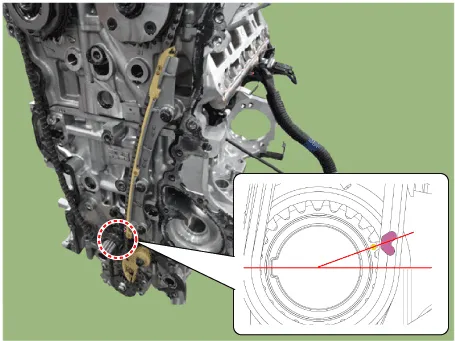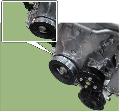 | 2. | Turn the crankshaft damper pulley clockwise, and align its groove with the timing mark of the timing chain cover.