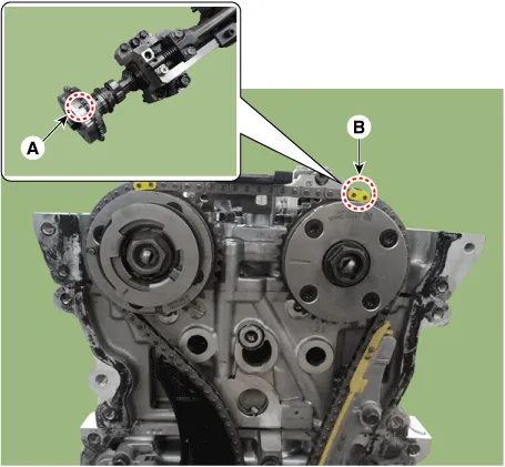 | 9. | Remove the oil pump chain. (Refer to Lubrication System - "Oil Pump") |