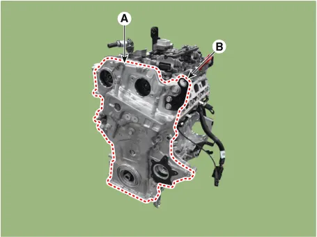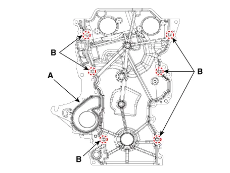 | 17. | Remove the timing chain cover (A) and hanger (B).