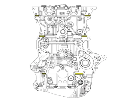 | 14. | Remove the oil pan. (Refer to Lubrication System - "Oil Pan") |