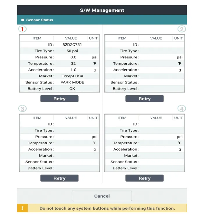 Description and operation DescriptionTPMS Receiver : BCM(body control module) integrated management1.Early state• Platform information and sensor ID are not input.