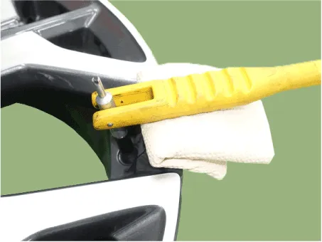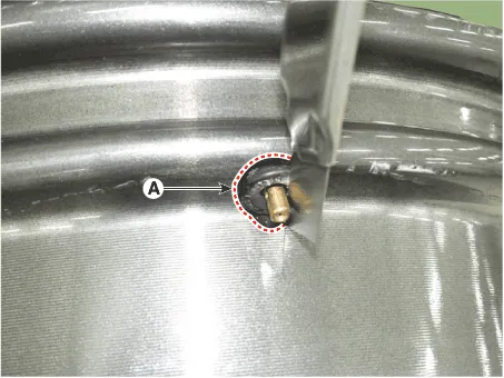 | 5. | Apply lubricant to the surface of the new valve, and then mount it through the valve hole of the wheel.