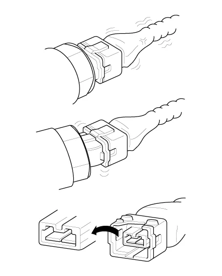 | 3. | Slightly shake the connector and wiring harness vertically and horizontally. |
