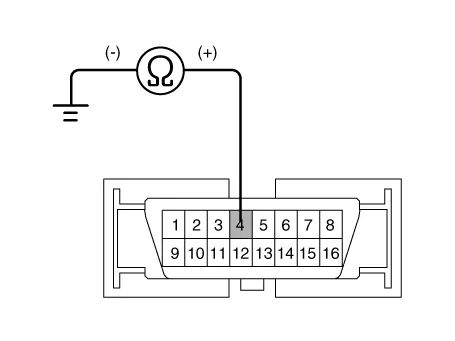 | 1. | Check for continuity between terminal 4 of the data link connector and body ground. Is there continuity?