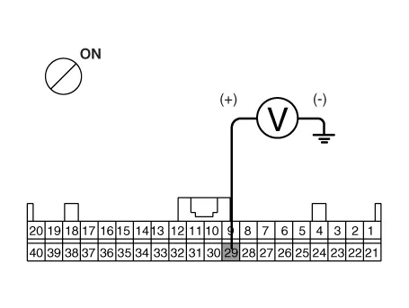 | 2. | Turn the ignition switch ON, measure the voltage between terminal 29 of the ABS control module harness side connector and body ground. Specification : approximately B+ |