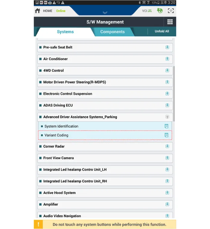 | 3. | Select the 'Advanced Driver Assistance Systems_Parking' and Variant Coding.