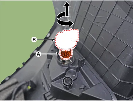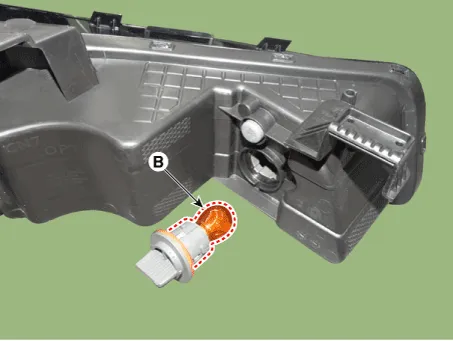 | 3. | Remove the bulb socket (B) and turn signal lamp bulb (A) from the lamp assembly.