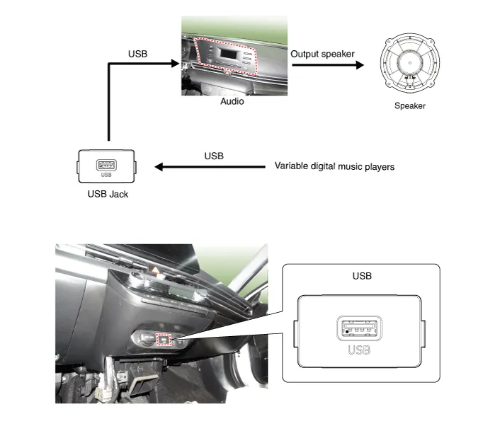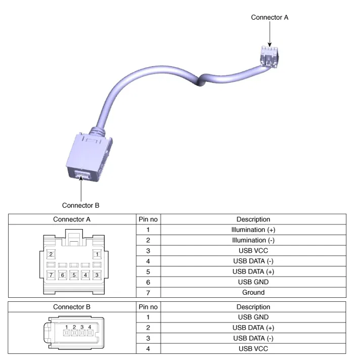 | 6. | Disconect the USB connector (B). [Display Audio only]