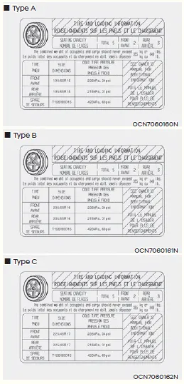 The label located on the driver's door sill gives the original tire size, cold tire pressures recommended for your vehicle, the number of people that can be in your vehicle and vehicle capacity weight.