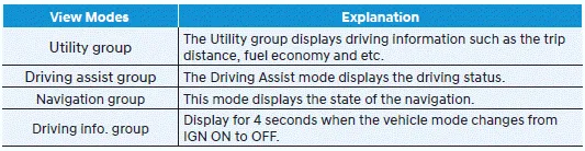 The LCD display modes can be changed by using the control buttons. Information When the infotainment system is applied, only the User’s Setting mode on the infotainment system is supported but the User’s Setting mode on the instrument cluster is not supported.