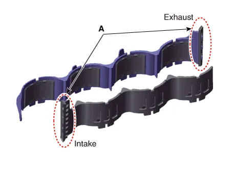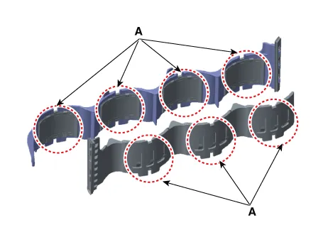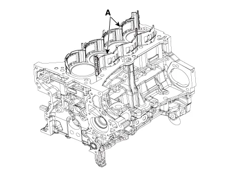 | 2. | Remove the RH water jacket insert and LH water jacket insert (A).