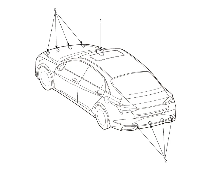 | 1. Integrated body control unit (IBU) | 2. Ultrasonic sensor |